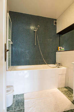 Questo appartamento é equipaggiato di un bagno piacevole. Questo bagno é dotato di tutto il necessario per il tuo benessere quotidiano : armadio, vasca da bagno. Il WC é separato dal bagno ed é situato in un locale indipendente.