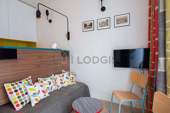 Questo appartamento é composto di un magnifico salone con del parquet al suolo vista su strada. Questo salone calmo é ammobiliato e equipaggiato per rendere il tuo soggiorno piacevole : televisione, coperte, tavola da pranzo, tavolino, guardaroba, armadio, armadio, 3 sedia (e), comodino1 letto.