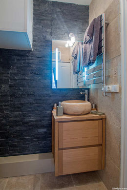 Questo appartamento dispone di una magnifica cucina con del piastrelle al suolo e tutto l'equipaggiamento indispensabile per la vita quotidiana : piani di cottura, frigorifero, congelatore, forno microonde, cappa di aspirazione, bollitore elettrico, armadio, stoviglie.