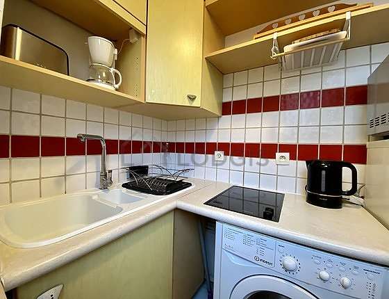 Questo appartamento dispone di una bella cucina con del piastrelle al suolo e tutto l'equipaggiamento essenziale per la vita quotidiana : piani di cottura, frigorifero, congelatore, microonde multifunzione, tostapane, bollitore elettrico, caffettiera, scaffale, armadio, stoviglie, bar.