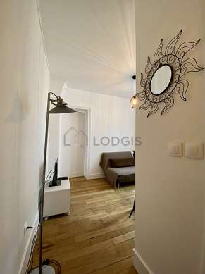 Questo appartamento é composto di un attraente salone con del parquet al suolo e delle finestras anti-rumore e vista su giardino. Questo salone molto calmo é ammobiliato e equipaggiato per rendere il tuo soggiorno piacevole : televisione, divano, tavola da pranzo, scaffale, credenza, 1 sedia (e).