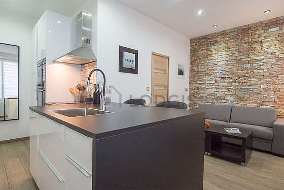 Questo appartamento dispone di una bella cucina con del piastrelle al suolo e tutto l'equipaggiamento essenziale per la vita quotidiana : piani di cottura, frigorifero, congelatore, forno, forno microonde, cappa di aspirazione, tostapane, bollitore elettrico, caffettiera, armadio, stoviglie, sgabello.