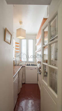 Questo appartamento dispone di una bella cucina con della coccio al suolo e tutto l'equipaggiamento necessario per la vita quotidiana : piani di cottura, frigorifero, congelatore, microonde multifunzione, tostapane, bollitore elettrico, caffettiera, scaffale, armadio, stoviglie.