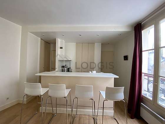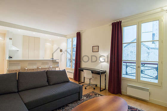 Questo appartamento é composto di un magnifico salone con del parquet al suolo e delle finestras anti-rumore. Questo salone molto calmo é ammobiliato e equipaggiato per rendere il tuo soggiorno piacevole : televisione, lenzuola, tavola da pranzo, tavolino, biblioteca, scaffale, armadio, 2 sedia (e)1 divano letto.