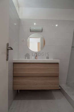 Questo appartamento é equipaggiato di un bagno piacevole e chiaro. Questo bagno é dotato di tutto il necessario per il tuo benessere quotidiano : asciugamani da bagno, armadio, doccia, pompa d'evacuazione. Il WC é integrato nel bagno
