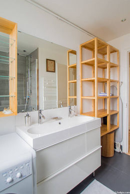 Questo appartamento é equipaggiato di un bagno magnifica e molto chiaro with finestras anti-rumore. Questo bagno é dotato di tutto il necessario per il tuo benessere quotidiano : scaffale, doccia, radiatore porta asciugamani. Il WC é separato dal bagno ed é situato in un locale indipendente.