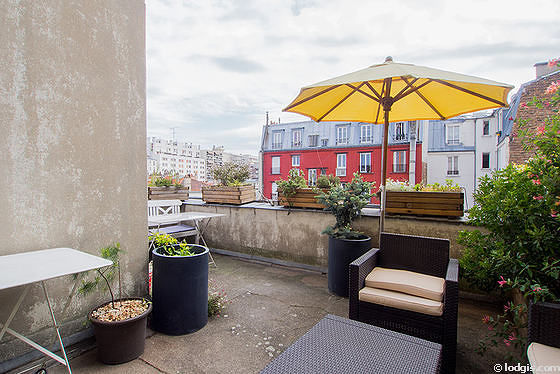 Con del cemento al suolo la terrazza di questo appartamento ti delizierà. Questo spazio esterno molto calmo e molto luminoso e fornito di divano, 2 poltrona (e), tavola da pranzo, tavolino sarà un vero "plus"per tuo soggiorno a Parigi, soprattutto durante le belle giornate.