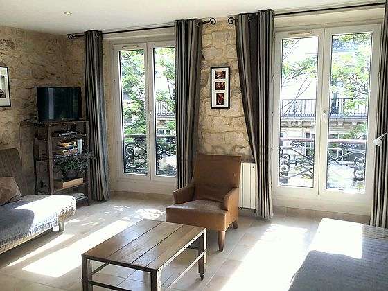 SoggiornoQuesto appartamento é composto di un attraente salone con del piastrelle al suolo e delle finestras anti-rumore e vista su strada. Questo salone calmo é ammobiliato e equipaggiato per rendere il tuo soggiorno piacevole : televisione, 1 poltrona (e), tavola da pranzo, tavolino, como', pietre visibili, 6 sedia (e)2 divano letto.