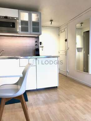 Questo appartamento dispone di una cucina e tutto l'equipaggiamento indispensabile per la vita quotidiana : piani di cottura, frigorifero, forno microonde, tostapane, bollitore elettrico, caffettiera, scaffale, armadio, stoviglie.