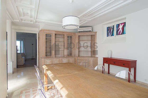 Per condividere un pasto conviviale durante il tuo soggiorno parigino, questo appartamento dispone di una magnifica sala da pranzo grazie a 1 poltrona (e), tavola da pranzo, scaffale, armadio, 6 sedia (e).