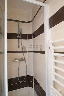 Questo appartamento é equipaggiato di un bagno piacevole. Questo bagno é dotato di tutto il necessario per il tuo benessere quotidiano : asciugamani da bagno, doccia, asciugacapelli, radiatore porta asciugamani. Il WC é separato dal bagno ed é situato in un locale indipendente.