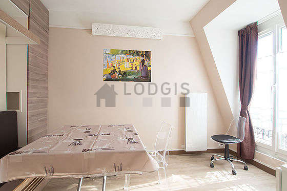Questo appartamento é composto di un attraente salone con del parquet al suolo e delle finestras anti-rumore e vista su cortile. Questo salone molto calmo é ammobiliato e equipaggiato per rendere il tuo soggiorno piacevole : televisione, lenzuola, coperte, tavola da pranzo, scaffale, armadio, 1 sedia (e)1 armadio letto.