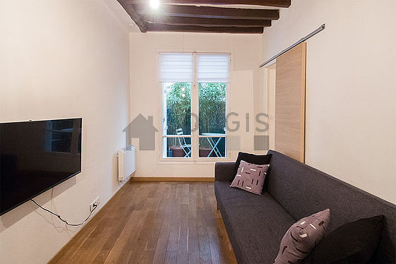 Questo appartamento é composto di un attraente salone con del parquet al suolo e delle finestras e vista su cortile. Questo salone calmo é ammobiliato e equipaggiato per rendere il tuo soggiorno piacevole : televisione, tavola da pranzo, scaffale, trave, 4 sedia (e)1 divano letto.