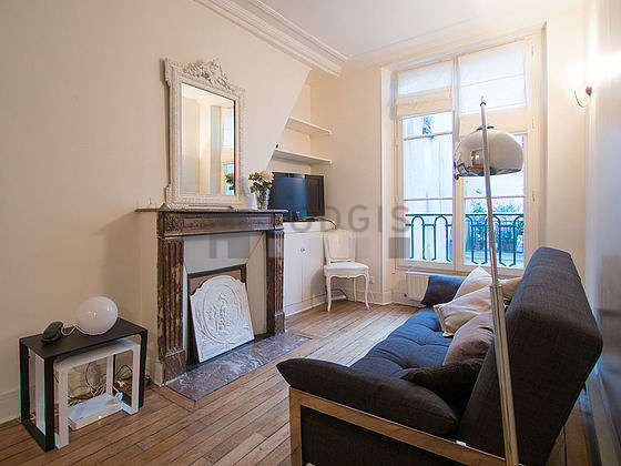 Questo appartamento é composto di un piacevole salone con del parquet al suolo e delle finestras anti-rumore e vista su cortile. Questo salone calmo é ammobiliato e equipaggiato per rendere il tuo soggiorno piacevole : televisione, divano, guardaroba, scaffale, armadio, camino.