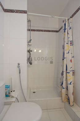 Questo appartamento é equipaggiato di un bagno piacevole e chiaro with finestras. Questo bagno é dotato di tutto il necessario per il tuo benessere quotidiano : asciugamani da bagno, armadio, doccia. Il WC é integrato nel bagno