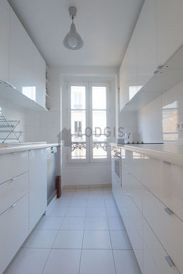 Questo appartamento dispone di una bella cucina con del piastrelle al suolo e tutto l'equipaggiamento essenziale per la vita quotidiana : piani di cottura, frigorifero, congelatore, forno, microonde multifunzione, cappa di aspirazione, bollitore elettrico, armadio, stoviglie.