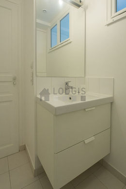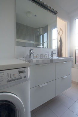 Questo appartamento é equipaggiato di un bagno piacevole e chiaro with finestras anti-rumore. Questo bagno é dotato di tutto il necessario per il tuo benessere quotidiano : asciugamani da bagno, vasca da bagno, asciugacapelli, sink. Il WC é integrato nel bagno