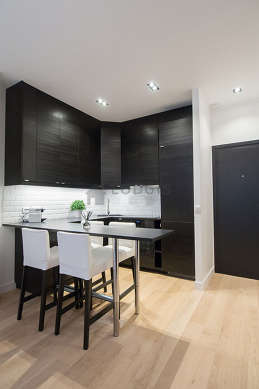Questo appartamento dispone di una magnifica cucina con del parquet al suolo e tutto l'equipaggiamento necessario per la vita quotidiana : piani di cottura, frigorifero, congelatore, forno, cappa di aspirazione, tostapane, caffettiera, scaffale, armadio, stoviglie, 1 sedia (e), bar.