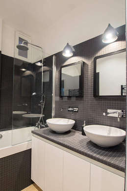 Questo appartamento é equipaggiato di un bagno magnifica with finestras anti-rumore. Questo bagno é dotato di tutto il necessario per il tuo benessere quotidiano : asciugamani da bagno, armadio, vasca da bagno, asciugacapelli, radiatore porta asciugamani. Il WC é separato dal bagno ed é situato in un locale indipendente.