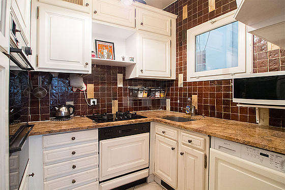 Questo appartamento dispone di una bella cucina con del piastrelle al suolo e tutto l'equipaggiamento essenziale per la vita quotidiana : piani di cottura, frigorifero, congelatore, forno, forno microonde, tostapane, bollitore elettrico, caffettiera, scaffale, armadio, stoviglie.
