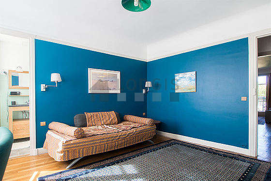 Questo appartamento é composto di un superbo salone con del parquet al suolo e delle finestras anti-rumore e vista su strada. Questo salone molto calmo é ammobiliato e equipaggiato per rendere il tuo soggiorno piacevole : televisione, 1 poltrona (e), tavola da pranzo, tavolino, biblioteca, scaffale, pianoforte, 4 sedia (e), curtains1 divano letto.