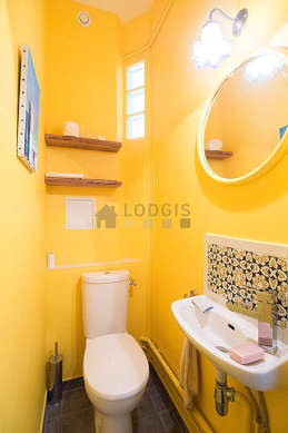 Questo appartamento é equipaggiato di un bagno magnifica e molto chiaro with finestras anti-rumore. Questo bagno é dotato di tutto il necessario per il tuo benessere quotidiano : asciugamani da bagno, scaffale, armadio, vasca da bagno, doccia, sink, mirror, radiatore porta asciugamani. Il WC é separato dal bagno ed é situato in un locale indipendente.