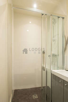 Questo appartamento é equipaggiato di un bagno piacevole. Questo bagno é dotato di tutto il necessario per il tuo benessere quotidiano : armadio, doccia, sink. Il WC é separato dal bagno ed é situato in un locale indipendente.