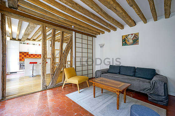 Questo appartamento é composto di un attraente salone con della coccio al suolo e delle finestras anti-rumore e vista su strada. Questo salone calmo é ammobiliato e equipaggiato per rendere il tuo soggiorno piacevole : televisione, tavolino, como', trave, 2 sedia (e), sgabello1 divano letto.