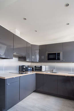 Questo appartamento dispone di una bella cucina con del parquet al suolo e tutto l'equipaggiamento indispensabile per la vita quotidiana : piani di cottura, frigorifero, congelatore, forno, forno microonde, cappa di aspirazione, tostapane, caffettiera, armadio, stoviglie, 2 sedia (e), bar.