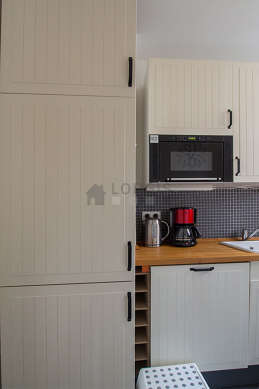 Questo appartamento dispone di una bella cucina con del piastrelle al suolo e tutto l'equipaggiamento indispensabile per la vita quotidiana : piani di cottura, frigorifero, congelatore, forno, forno microonde, cappa di aspirazione, bollitore elettrico, caffettiera, armadio, stoviglie, robot da cucina.