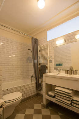Questo appartamento é equipaggiato di un bagno piacevole e chiaro with finestras anti-rumore. Questo bagno é dotato di tutto il necessario per il tuo benessere quotidiano : doccia, sink. Il WC é separato dal bagno ed é situato in un locale indipendente.