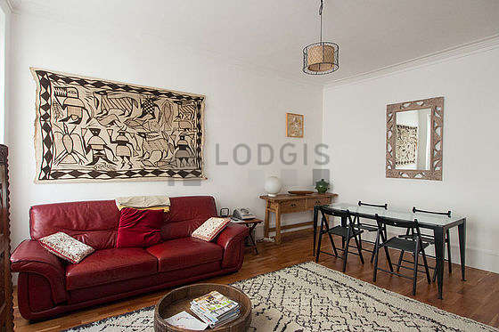 Questo appartamento é composto di un magnifico salone con del parquet al suolo vista su strada. Questo salone calmo é ammobiliato e equipaggiato per rendere il tuo soggiorno piacevole : televisione, divano, tavola da pranzo, tavolino, biblioteca, credenza, 4 sedia (e).