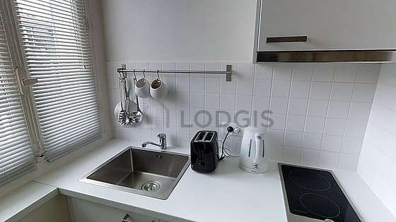 Questo appartamento dispone di una bella cucina con del piastrelle al suolo e tutto l'equipaggiamento essenziale per la vita quotidiana : piani di cottura, frigorifero, congelatore, microonde multifunzione, cappa di aspirazione, tostapane, bollitore elettrico, caffettiera, armadio, stoviglie, bar.