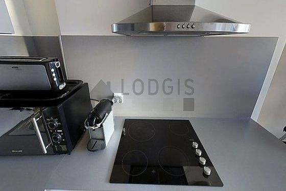 Questo appartamento dispone di una magnifica cucina con del parquet al suolo e tutto l'equipaggiamento essenziale per la vita quotidiana : piani di cottura, frigorifero, forno microonde, congelatore, tostapane, bollitore elettrico, caffettiera, armadio, stoviglie, 1 sedia (e), bar.
