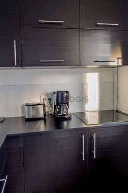 Questo appartamento dispone di una magnifica cucina con del piastrelle al suolo e tutto l'equipaggiamento indispensabile per la vita quotidiana : piani di cottura, microonde multifunzione, congelatore, tostapane, bollitore elettrico, caffettiera, armadio, stoviglie.