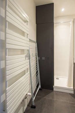 Questo appartamento é equipaggiato di un bagno piacevole e chiaro. Questo bagno é dotato di tutto il necessario per il tuo benessere quotidiano : asciugamani da bagno, armadio, doccia, sink, radiatore porta asciugamani. Il WC é separato dal bagno ed é situato in un locale indipendente.