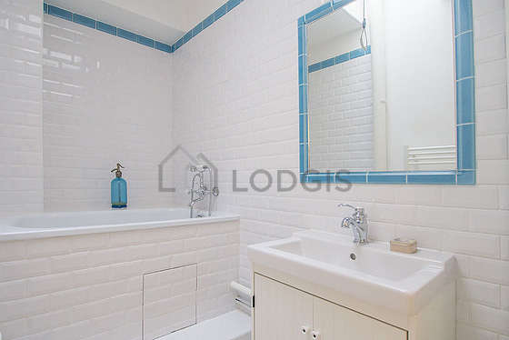 Questo appartamento é equipaggiato di un bagno piacevole e chiaro. Questo bagno é dotato di tutto il necessario per il tuo benessere quotidiano : asciugamani da bagno, armadio, vasca da bagno, radiatore porta asciugamani. Il WC é separato dal bagno ed é situato in un locale indipendente.