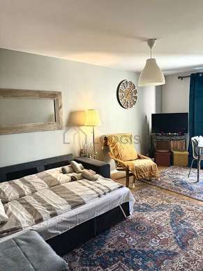 Questo appartamento é composto di un attraente salone con del parquet al suolo vista su cortile. Questo salone molto calmo é ammobiliato e equipaggiato per rendere il tuo soggiorno piacevole : televisione, tavola da pranzo, 4 sedia (e), tv stand1 divano letto.