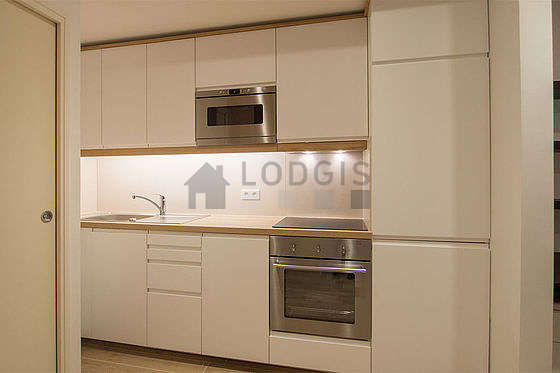 Questo appartamento dispone di una magnifica cucina adiacent al soggiorno con del piastrelle al suolo e tutto l'equipaggiamento indispensabile per la vita quotidiana : piani di cottura, frigorifero, congelatore, forno, forno microonde, cappa di aspirazione, tostapane, bollitore elettrico, caffettiera, armadio, stoviglie, sgabello, bar.