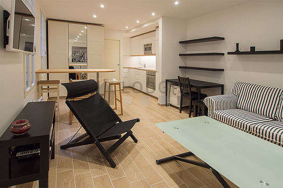 Adiacent al soggiorno, questo appartamento ti propone una magnifica cabina alcova. Dotata de lenzuola, coperte, scrivania, scaffale, armadio, 1 sedia (e), questa alcova é una vero locale abitabile supplementare per il tuo soggiorno.