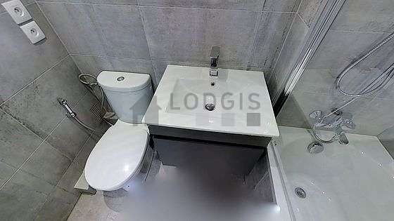 Questo appartamento é equipaggiato di un bagno magnifica e molto chiaro. Questo bagno é dotato di tutto il necessario per il tuo benessere quotidiano : armadio, vasca da bagno, sink, radiatore porta asciugamani. Il WC é integrato nel bagno