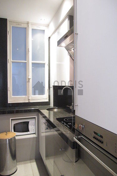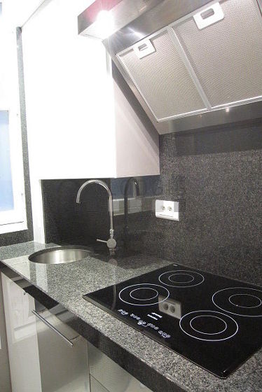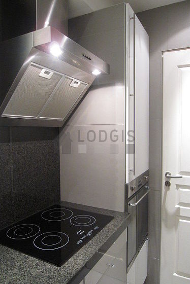 Questo appartamento dispone di una bella cucina con del piastrelle al suolo e tutto l'equipaggiamento indispensabile per la vita quotidiana : piani di cottura, frigorifero, forno, forno microonde, congelatore, cappa di aspirazione, bollitore elettrico, caffettiera, armadio, stoviglie.
