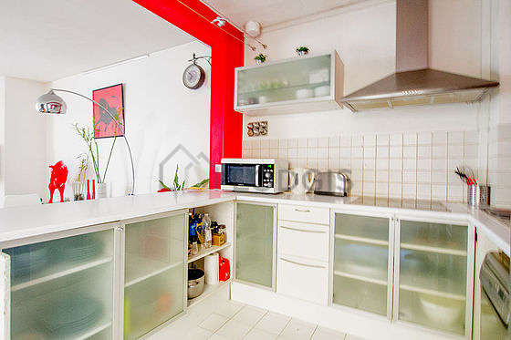 Questo appartamento dispone di una magnifica cucina con del piastrelle al suolo e tutto l'equipaggiamento essenziale per la vita quotidiana : piani di cottura, frigorifero, congelatore, microonde multifunzione, cappa di aspirazione, tostapane, bollitore elettrico, scaffale, armadio, stoviglie, bar.