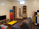 SoggiornoQuesto appartamento é composto di un attraente salone con del parquet al suolo e delle finestras. Questo salone molto calmo é ammobiliato e equipaggiato per rendere il tuo soggiorno piacevole : televisione, lenzuola, coperte, tavola da pranzo, tavolino, scaffale, armadio, 2 sedia (e), tv stand1 divano letto.