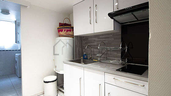 Questo appartamento dispone di una bella cucina con del parquet al suolo e tutto l'equipaggiamento essenziale per la vita quotidiana : piani di cottura, frigorifero, forno microonde, congelatore, cappa di aspirazione, bollitore elettrico, caffettiera, tavola da pranzo, scaffale, armadio, stoviglie, 1 sedia (e).
