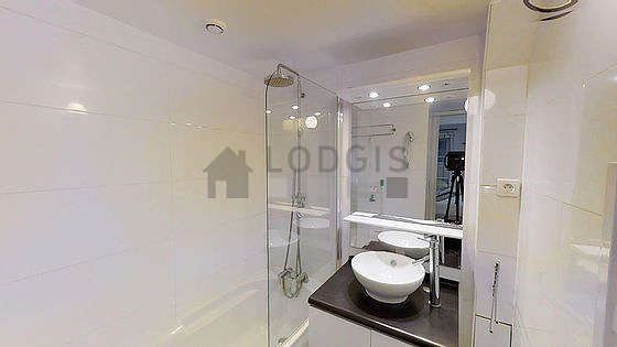 Questo appartamento é equipaggiato di un bagno magnifica. Questo bagno é dotato di tutto il necessario per il tuo benessere quotidiano : asciugamani da bagno, scaffale, armadio, vasca da bagno, asciugacapelli, sink, radiatore porta asciugamani. Il WC é separato dal bagno ed é situato in un locale indipendente.
