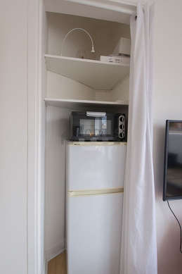 Con del piastrelle al suolo la terrazza esposta pieno sud di questo appartamento ti delizierà. Questo spazio esterno fornito di tavola da pranzo, scaffale, armadio, 1 sedia (e) sarà un vero "plus"per tuo soggiorno a Parigi, soprattutto durante le belle giornate.