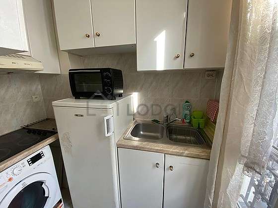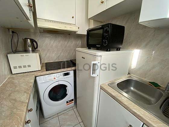 Questo appartamento dispone di una bella cucina con del piastrelle al suolo e tutto l'equipaggiamento necessario per la vita quotidiana : piani di cottura, frigorifero, congelatore, forno, forno microonde, cappa di aspirazione, tostapane, bollitore elettrico, caffettiera, armadio, stoviglie, robot da cucina.