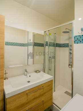 Questo appartamento é equipaggiato di un bagno piacevole e chiaro. Questo bagno é dotato di tutto il necessario per il tuo benessere quotidiano : asciugamani da bagno, doccia, asciugacapelli, sink, radiatore porta asciugamani. Il WC é separato dal bagno ed é situato in un locale indipendente.