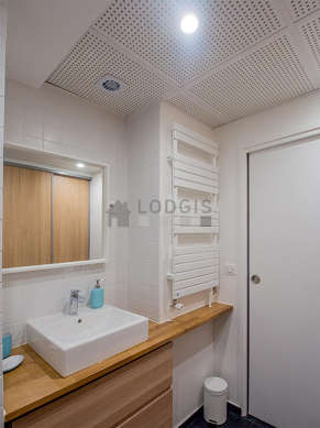 Questo appartamento é equipaggiato di un bagno magnifica e molto chiaro. Questo bagno é dotato di tutto il necessario per il tuo benessere quotidiano : asciugamani da bagno, guardaroba, armadio, vasca da bagno, asciugacapelli, sink, radiatore porta asciugamani. Il WC é separato dal bagno ed é situato in un locale indipendente.